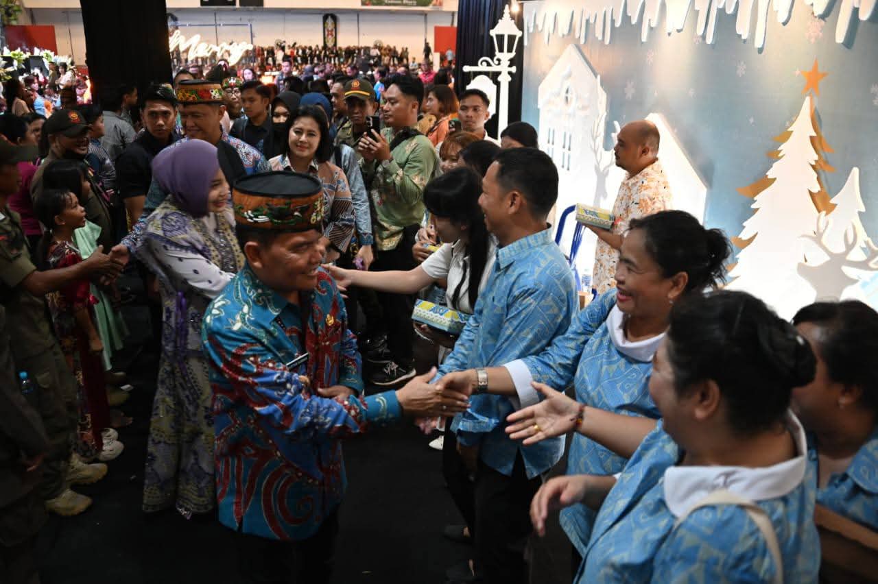 Gubernur Agustiar Sabran dan Ketua TP PKK Aisyah Agustiar Sabran menghadiri Perayaan Natal Pemerintah Provinsi Kalimantan Tengah di GOR Indoor Jalan Tjilik Riwut Km 5 Palangka Raya, Senin (29/12/2025). . Pada kesempatan sambutan Gubernur mengajak masyarakat menjaga nilai-nilai luhur “Huma Betang” untuk saling menghormati dan menjaga kebersamaan.