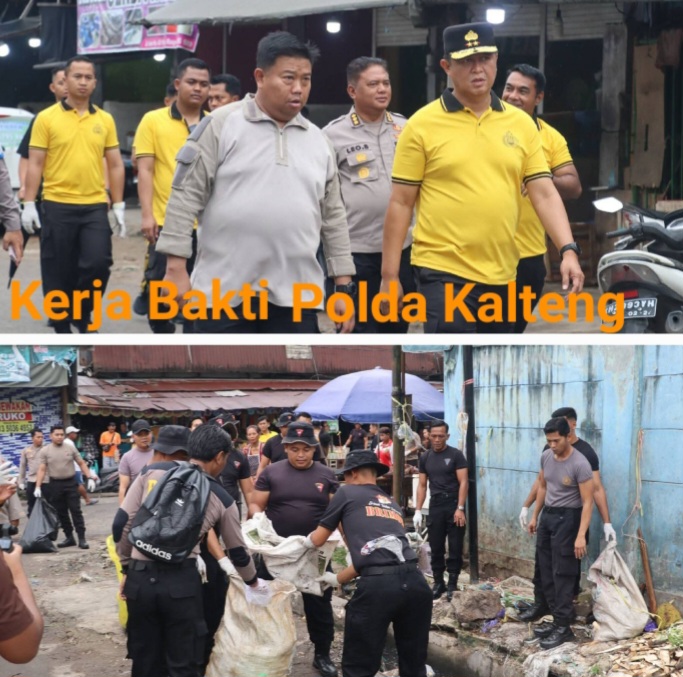 Kapolresta Palangka Raya Kombes Pol Dedy Supriadi, S.I.K., M.H., mendampingi Kapolda Kalteng Irjen Pol. Iwan Kurniawan, S.I.K., M.Si., dalam kegiatan kerja bakti (kurve) di kawasan Pasar Besar Palangka Raya.